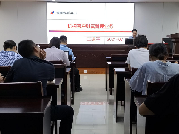 市金投集團緊緊圍繞黨史學習教育第二階段的學習教育目標“學黨史強本領,辦實事開新局”,組織開展“點亮“金”能力 提升“紅”素質——七月金融業務培訓學習會,在集團上下營造濃厚的學習氛圍,唱響學史踐行、愛黨愛集團的金投主旋律。7月29日下午,市金投集團邀請中國銀河證券股份有限公司總部資深講師王建平、肖華宣講《機構客戶的財富管理業務交流》、《金融工具在金融資產盤活中的應用》等課題,圍繞目前集團所持有的股票資源、二級市場動態、監管政策要點以及金融衍生品工具相關內容進行培訓交流。