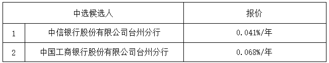 臺州市金融投資集團有限公司中期票據和定向債務融資工具發行承銷商招標(非政府采購)(重新招標)項目,經評標委員會評審,結果公示如下: