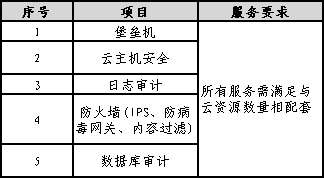 云安全服務(wù)配置清單如下:
