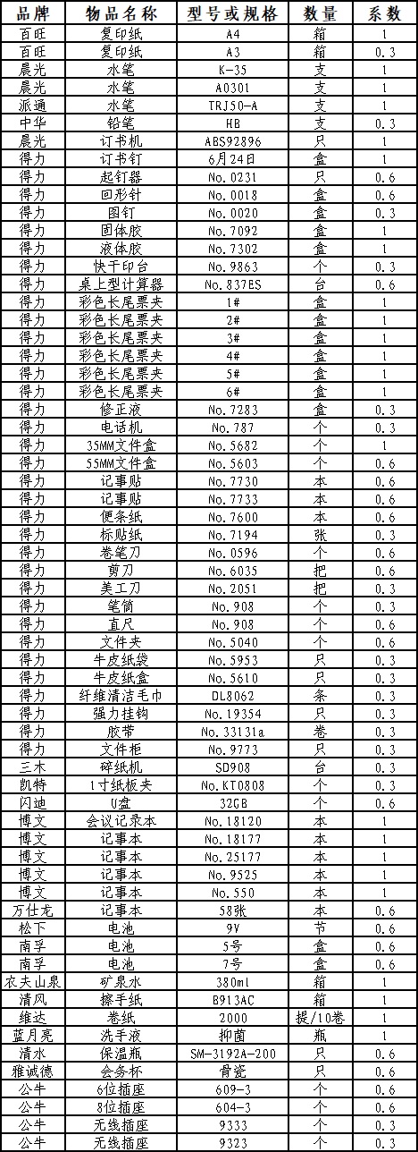 符合采購需求、質(zhì)量和服務相等的前提下,采用價格比選,所有清單物品單價乘以系數(shù)再相加匯總,價低者為成交供應商。