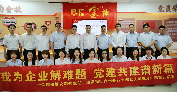 5月13日下午,市金控租賃有限公司黨支部與浦發(fā)銀行臺州分行本部黨支部開展“我為企業(yè)解難題 黨建共建譜新篇”主題黨日活動。市金投集團黨委書記管順正,集團黨委委員兼市金控租賃公司黨支部書記龐曉鋒,浦發(fā)銀行臺州分行黨委委員兼本部黨支部負責人韓軍出席活動。